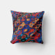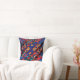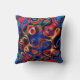 Ett pulserande, flerfärgat dekorativ kudde med guld och röda virvelripplar.