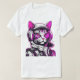 En påfallande cyberpunk katt med hörlurar och futuristiska hjälm. Den djärva nyansen för rosa och lila och den edgy designen gör det till perfekt för fläkt av digital konst, punk mode och sci-fi-tetik.