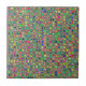Produkten är tillverkad av en unik texturerad mosaik med kvadratiska plattor mönster i neon grönt, blått, gult, rött och annat levande regnbåge i färg.