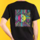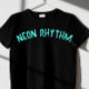 T-shirt-design för vintage-stil med en neonrytm med lagrade neonstrålar, rent linjer och en vintage, tillsammans med frasen "NEON RHYTHM.