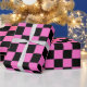Neon rosa och svart rutigt schackbräde vintage presentpapper