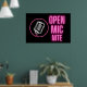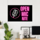 Neon rosa "Open Mic Nite"-text med neon retro stil silhouette på svart bakgrund gör detta till en underbar utformning för en rad olika evenemang från grannlandet pub och kaffehuset öppet myrnit till party för familj och vänner