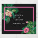 Ett modernt men efterstrålat neontropiskt botaniskt rosa mot svart bakgrund. En vacker bröllop-design perfekt för sommaren. Utformning av nyplanterade tropiska rosor med blommor från handflatan träd, rosa Hibiscus och Plumerias Frangipanis. Svart, rosa och grönt färg dominerar denna tropiska rosa nydesign. Den moderna kalligraftypografin kontrasterar perfekt mot den svarta och rosa bröllop temadesignen. En vin-etikettdesign i klassy elegant bröllop med gnistrande utseende och modernt enkelt inslag. Det finns även alternativ för matchning av bröllop-kontorsartiklar och andra bröllopsinbjudningsformat.