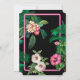 Ett modernt men efterstrålat neontropiskt botaniskt rosa mot svart bakgrund. En vacker bröllop-design perfekt för sommaren. Utformning av nyplanterade tropiska rosor med blommor från handflatan träd, rosa Hibiscus och Plumerias Frangipanis. Svart, rosa och grönt färg dominerar denna tropiska rosa nydesign. Den moderna kalligraftypografin kontrasterar perfekt mot den svarta och rosa bröllop temadesignen. En elegant bröllop-inbjudan med modernt enkelt inslag. Det finns även alternativ för matchning av bröllop-kontorsartiklar och andra bröllopsinbjudningsformat.