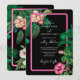 Ett modernt men efterstrålat neontropiskt botaniskt rosa mot svart bakgrund. En vacker bröllop-design perfekt för sommaren. Utformning av nyplanterade tropiska rosor med blommor från handflatan träd, rosa Hibiscus och Plumerias Frangipanis. Svart, rosa och grönt färg dominerar denna tropiska rosa nydesign. Den moderna kalligraftypografin kontrasterar perfekt mot den svarta och rosa bröllop temadesignen. En elegant bröllop-inbjudan med modernt enkelt inslag. Det finns även alternativ för matchning av bröllop-kontorsartiklar och andra bröllopsinbjudningsformat.