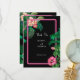 Ett modernt men efterstrålat neontropiskt botaniskt rosa mot svart bakgrund. En vacker bröllop-design perfekt för sommaren. Utformning av nyplanterade tropiska rosor med blommor från handflatan träd, rosa Hibiscus och Plumerias Frangipanis. Svart, rosa och grönt färg dominerar denna tropiska rosa nydesign. Den moderna kalligraftypografin kontrasterar perfekt mot den svarta och rosa bröllop temadesignen. Ett klassens elegant bröllop-tack är att du har kortdesign med modernt enkelt inslag. Det finns även alternativ för matchning av bröllop-kontorsartiklar och andra bröllopsinbjudningsformat.