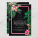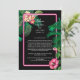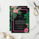 Ett modernt men efterstrålat neontropiskt botaniskt rosa mot svart bakgrund. En vacker bröllop-design perfekt för sommaren. Utformning av nyplanterade tropiska rosor med blommor från handflatan träd, rosa Hibiscus och Plumerias Frangipanis. Svart, rosa och grönt färg dominerar denna tropiska rosa nydesign. Den moderna kalligraftypografin kontrasterar perfekt mot den svarta och rosa bröllop temadesignen. En resväg i elegant bröllop-klass med modern enkel inslag. Det finns även alternativ för matchning av bröllop-kontorsartiklar och andra bröllopsinbjudningsformat.