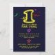Kort färgad 1:a födelsedag med en nybörjare 1, stjärnor och konetti.