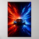 Neon Split Speed Supercar – Red & Blue Energy Burs Poster