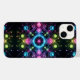 Turn heads with this visually striking phone case featuring a symmetrical abstract geometric design. Perfectly aligned circles, triangles, and hexagons glow in vibrant neon gradients—pink, electric blue, lime green, and purple—set against a deep black background. The smooth lines, radiant edges, and soft light scatter give it a futuristic, tech-inspired vibe. Ideal for lovers of modern digital art, symmetry, and sleek design.