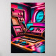 Lägg dig i Neon Synthwave Galaxys nybelysta värld Poster. I den här teckningen kombineras ett stereosystem i vintagen, ett kontrollrum för futuristiskan och en lysande holografisk visning. Den levande färg och den eleganta metalliska avsluta skapar en nostalgisk men futuristiska ambians som kommer att fånga vilket rum som helst.