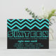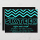 Perfekt för en Sweet 16 party innehåller den här inbjudan en snyggt neonfärgad teal och svartfärgad schvron-utskrift.