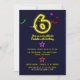 Kort färgad 6e Birthday-inbjudningar med nybörjare 6, stjärnor och konetti.
