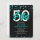 Bjud in vänner och familj att fira din 50-årsdag med denna turkosa neon FIFTY födelsedagsinbjudan.