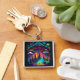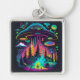 Neon UFO och Alien Scene Psychedelic Art Fyrkantig Silverfärgad Nyckelring