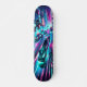 "Lägg dig i "Neon Velocity: Cyberpunk Chase Skateboard Deck". Den här designen ger liv åt en blomstrande snabbsökning genom en neonupplyst cyberpunk stad. En slimmad, futuristiska bil, belyst med glanande linjer, dold genom trafik och neonhologram, nära förföljd av hovande polistrummor. Stadens livfulla nya ljus och digitala anslagstavlor ökar känslan av brådska och handling. Elblyen, hettens nyp och nätta gröntar skapar en dynamisk miljö av hastighet och adrenalin