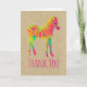 Ett tackkort med en funky, 60 stil-psykedelisk illustration av en baby zebra i färg, nära, av ljus gult, shock rosa och mint grönt. Vild och roligt med ett kreativ är en fläck. Sätt på en papper bakgrund för faux-farkosten. På framsidan står tack och på insidan av kortet finns ett meddelande som kan anpassas eller så kan du lämna som det är.