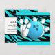 Fira födelsedagar eller andra roliga tillfällen med en bowlingfest. Anpassa texten på denna roliga ljusblå och zebrarandiga festinbjudan.