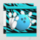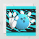 Fira födelsedagar eller andra roliga tillfällen med en bowlingfest. Anpassa texten på denna roliga ljusblå och zebrarandiga festinbjudan.