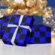 Neonblå och svart rutig schackbräda vintage presentpapper