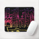 Ett original- biet av skrapakonst av en stadshorisont i ljust neon.