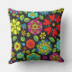 Fyrkantig utomhus kastkudde dekorativt stilrent heminredningstillbehör dekorativt tillbehör tryckt med Neonfärger på svart retroblommig sömlös mönster original handritad grafisk design illustration av TheFabricSeal tryck på begäran butik på Zazzle.com #ZazzleMade ©️Original. https://www.zazzle.com/store/thefabricseal