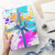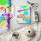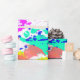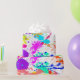 Roligt neonfärgssprut i nyanser av rosa, blå, lila, gul, grön och orange på vit bakgrund.