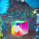 Neonregnbåge med hjärta presentaskar