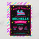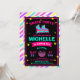 Beskrivning: Neonrulle som åker skridskor inbjudan för svart tavlaregnbågefödelsedag