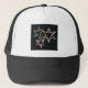 Detta lock har en design av tre judiska stjärnor i neonfärger på en svart bakgrund.