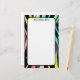 Brevpapper som presenterar en zebra tryckdesign med svart, görar randig och inspirerad gult för neon80-tal airbrushen, rosor, blått och gröntbakgrund. Center är vit. Personifiera med ditt namn på bästa.