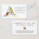 Elegant, roligt konstnärligt monogram.. Här är brev A. Neoplasticism stil, eller De Stijl, och färg konstnärlig dekoration, den roliga fågeln sitter vid brev. Konstens fält ligger under brev. Mallen namn och handel finns på högerna av bilden, företaget namn, motto, adress och kontaktinformation på baksidan av kortet. Bild med liten abstrakt på baksidan. Du kan ändra eller ta bort alla personuppgifter och all bilder. Unikt affärskort av ett slag för alla. Du kan överföra den här designen till en annan valfri produkt. Njut och vara lycklig! Knappen "Redigera design" eller "Anpassa" (som fodral kan vara) i det blå färg kan vara gratis för använda om du vill ändra typsnittet, färg eller placeringen av malltexten, eller om du vill justera designen till den valda produktens form och storlek.