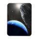 En konstnärs idé om Neptuns lilla måne Hippocamp som upptäcktes av Hubble Space Telescope 2013. Bara 20 miles över kan det faktiskt vara ett avbrutet fragment från ett mycket större grannland måne, Proteus, som ses som ett halvmåne i bakgrunden. Detta är det första beviset för att ett måne är ett avsteg från en kometkollision med ett mycket större föräldraorgan.