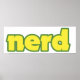 Roligt Nerd text i gult med en grönt kontur. Skäms inte vara en nörd, hög och stolt.