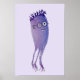 Geek jellyfish monster poster med en vattenfärgad illustration av en leende blåaktig lila med navelglas, tentakler, stora tänder och roligt hår. Den här konstiga monsterdesignen kommer att tilltala människor som kärlek roligt, fånig, gäckande konst.