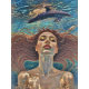 "Nerena" under stilla Vatten. I detta ögonblick av suspenderad andedräkt och viktlöshet blir hon en med vattenvärlden - lugn, varning, tyvärr. Meditation om natur, djup och kvinnans återhämtningsförmåga. Kvinna, delfinsköldpadda porträtt.