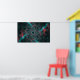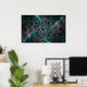 En grönt och en röd, nätverksliknande fraktalbild på mörkens bakgrund. Ett organiskt kretskort.