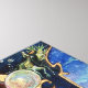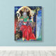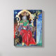 Färgstark, vibrerande, contemporary färgad i guld,blå,röd,grönt,brunt färg . En mystisk hypnotisk trollkarl med elegant vackra rött sammetstumpar som håller en magisk sfär sitta på en gotisk tron med gargotyp och uggla. Ambient är surrealistiskt, fantastiskt, alkemi, där man ser en jester dricka från ett kopp, ett templärt munk som flyger på en groda, genomskinliga bubblor, fantasylandskap med helvetelbrand, kosmisk blå himmel med stjärnor, berg av himmel,träd . Egg Tempera på träpanel med guldfolie. 1989. , Miniature Made with pictorical technologies of 1300 by Alessandro Lumini (c) Det är också en vacker fantasi för jul, Helgdag, födelsedag, Nyårsafton dag, Mardi Gras och Carnival hälsning.