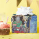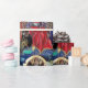 Färgstark, vibrerande, contemporary färgad i guld,blå,röd,grönt,brunt färg . En mystisk hypnotisk trollkarl med elegant vackra rött sammetstumpar som håller en magisk sfär sitta på en gotisk tron med gargotyp och uggla. Ambient är surrealistiskt, fantastiskt, alkemi, där man ser en jester dricka från ett kopp, ett templärt munk som flyger på en groda, genomskinliga bubblor, fantasylandskap med helvetelbrand, kosmisk blå himmel med stjärnor, berg av himmel,träd . Egg Tempera på träpanel med guldfolie. 1989. , Miniature Made with pictorical technologies of 1300 by Alessandro Lumini (c) Det är också en vacker fantasi för jul, Helgdag, födelsedag, Nyårsafton dag, Mardi Gras och Carnival hälsning.