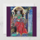 Färgstark, vibrerande, contemporary färgad i guld,blå,röd,grönt,brunt färg . En mystisk hypnotisk trollkarl med elegant vackra rött sammetstumpar som håller en magisk sfär sitta på en gotisk tron med gargotyp och uggla. Ambient är surrealistiskt, fantastiskt, alkemi, där man ser en jester dricka från ett kopp, ett templärt munk som flyger på en groda, genomskinliga bubblor, fantasylandskap med helvetelbrand, kosmisk blå himmel med stjärnor, berg av himmel,träd . Egg Tempera på träpanel med guldfolie. 1989. , Miniature Made with pictorical technologies of 1300 by Alessandro Lumini (c) Det är också en vacker fantasi för jul, Helgdag, födelsedag, Nyårsafton dag, Mardi Gras och Carnival hälsning.