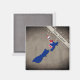 Schönes Souvenir oder inspiration für die nächste Urlaubsplanung: Magnet mit einem Umriss von Neuseeland, gefärbt in den Farben der Nationalflaggge. Auf der "Best in Travel 2018"-Liste von Lonely Planet liegt Neuseeland auf Platz 5.
