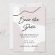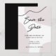 Dessa moderna minimalistiska bröllops-kort för att spara datum har en chic neutral beige akvarelldesign på vitt, med en abstrakt svart kurvig linje för extra stil. Baksidan av kortet är en rik svart som framhäver det beige färgtonens subtilitet. Modern, trendig handskriven skrift fullbordar denna stilrena look.