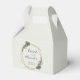 Boho stil Baby Shower Favor Box med "Kärlek and Tack" i ett elegant-skript tillsammans med ditt namn och din händelsenamn, inuti ett guld-geometriskt ram som omges av grönska och vita blommor. De här botaniska temat favärdesboxarna med könsneutral design är underbara oavsett om du har en pojke eller en flicka. Ram: a) Designad av Freepik<a href="http://www.freepik.com">