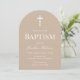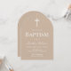 This neutral beige arch baptism invitation is perfect for an elegant celebration. Featuring a neutral palette and clean minimalist design, it suits both boys and girls beautifully. Easily customize all details for your event. The simple arch layout and white cross create a refined look that complements any baptism, christening, or dedication ceremony.