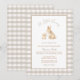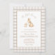 Celebrate your little bundle of joy with this elegant neutral baby shower invitation featuring a sweet watercolor bunny illustration framed by a classic beige gingham border.