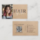 Neutral Beige Suede Hair Stylist Photo QR Code Visitkort