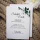 Detta neutrala botaniska bröllopsschema tillhandahåller en enkel, rustik växtpalett för att samordna med valfritt traditionellt bröllopstema. Den minimalistiska grönskan, med mörka och grå nyanser av eleganta eukalyptusblad och växtlighet, tillsammans med den klassiska, lediga kalligrafin, öppnar upp en minimalistisk naturkänsla för en klassisk, formell bröllopsfirande. Lägg till mer på baksidan för en tidslinje fylld med ännu fler händelser och information för dina gäster.