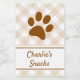 Keep your dog treats looking neat and stylish with this neutral gingham pet food label! Featuring a warm brown, beige, and white checkered pattern, a sweet paw print detail, and space for your pup’s name, this label is perfect for treat jars, storage bins, or homemade gift packaging. A cozy, rustic touch for any dog-loving home.