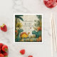 Step into a lush prehistoric paradise with this vintage-style dinosaur design. Featuring palm trees, ferns, and gentle dinosaurs in warm earthy tones, it’s perfect for a baby shower with adventure and charm. A timeless blend of tropical greenery and whimsical Jurassic nostalgia.