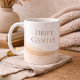 Desert-inspired neutral design in a clean white base, featuring horizontal abstract dune lines paired with muted serif lettering that reads Drift Gently. The sand-toned graphic styling complements open shelving, kitchen counters, or desk setups for those who prefer warm, understated interiors with a modern edge.
